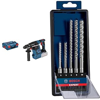 Akku-Bohrhammer BOSCH PROFESSIONAL SDS plus GBH 18V-26 Solo L-BOXX + 5x Expert SDS plus-7X Hammerbohrer Set (für Stahlbeton, Ø 5-10 mm, Zubehör) | 5 Stück (1er Pack)