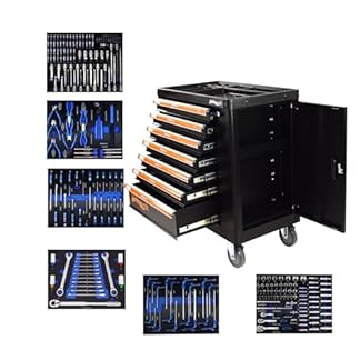 €158,49Produkt kaufenHolmwerk Werkzeugwagen bestückt 252 TLG. XXL Werkstattwagen gefüllt 7 Schubladen + Seitenfach abschließbar 6 bestückte Schubladen mit Schaumstoffeinlagen | Montagewagen Assistent (schwarz)