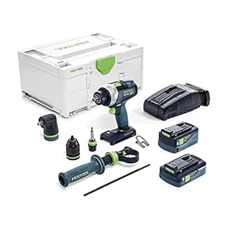 €339,00Produkt kaufenFestool Akku-Schlagbohrschrauber TPC 18/4 5,0/4,0 I-Set QUADRIVE (mit Akkupacks, Schnellladegerät, Werkzeugfutter, Schnellspannbohrfutter, Zusatzhandgriff,Winkelvorsatz,Bitkassette,Bit), im Systainer