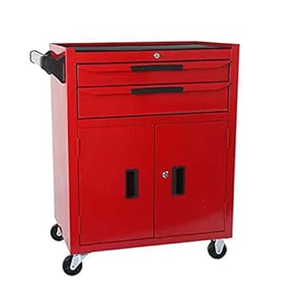 Bderkz 2-Schublade Zuhause 2 Tür Rollender Werkzeugwagen mit Rädern und Kabinett, Schwerlast Werkzeugkasten-Organizer für Mechanik und Hausgarage (Grau) (Color : Red)
