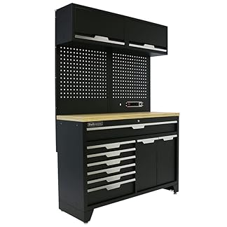 €1670,93Produkt kaufenKraftmeister Minnesota Werkstatteinrichtung – Männerküche mit 7 Schubladen und 3 Schränken – Werkzeugschrank, Garage – modulares Werkbank mit Holzarbeitsplatte (Multiplex) und Werkzeugwand – Schwarz