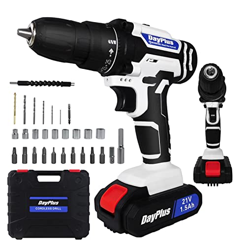 🏅Die kabellose Mehrzweck-Bohrmaschine bietet ein maximales Drehmoment von 45 N.m/ 340 In-lb für schwere Bohraufgaben und wiegt mit einem 1,5-Ah-Lithium-Ionen-wiederaufladbare Batterie und 29 Zubehörteilen hingegen 1,65 kg Diversität von Anwendungen. Wie Wand, Holz, Metall, PVC-Bohren, leistungsstarker Elektroschrauber. Der elektrische Schlagschrauber ist kompakt und leicht, bequem für Transport und Lagerung.