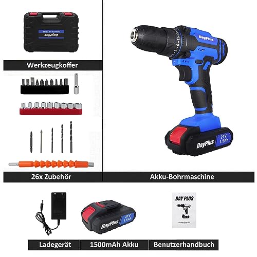 🎀[Was Sie bekommen] 1x aufladbare Batterie-Bohrmaschine, 2x 1500mAh Akkus, 1x Ladegerät, 26x Zubehör, 1x Werkzeugkoffer, 1x Benutzerhandbuch. Vielfältiges Zubehör ermöglicht die Verwendung bei verschiedenen Gelegenheiten.