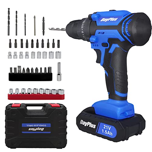 Die kabellose Mehrzweck-Bohrmaschine bietet ein maximales Drehmoment von 45 N.m/ 398.28 In-lb für schwere Bohrarbeiten bei einem Gewicht von immerhin 1,65 kg mit 1,3Ah Lithium-Ionen-Akku und 26 Zubehörteilen, was sie zu einem extrem vielseitigen Werkzeug macht, das eine Vielfältigkeit von Anwendungen durchführen kann. Wie z.B. Wand-, Holz-, Metall-, PVC-Bohrungen, leistungsstarker Elektroschraubendreher. Elektrische Schlagschrauber ist kompakt und leicht bequem für Transport und Lagerung.