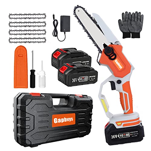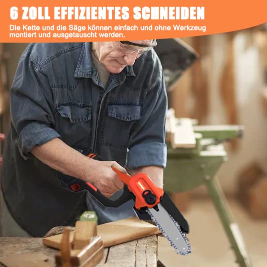 6 Zoll Akku Kettensäge, Mini Kettensäge mit akku, Elektro Handkettensäge Kettensägen, Mit Ladegerät Und 2 Batterien für Gartenscheren Astschere Holzschneiden