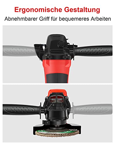 Abeden Winkelschleifer 18v mit verstellbarem Gummi-Hilfsgriff verbessert den Arbeitskomfort. Darüber hinaus bietet der bürstenlose Flex-Motor mit einer Geschwindigkeit von 9800 U/min mehr Leistung beim Schleifen und Ablösen.