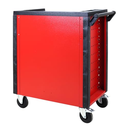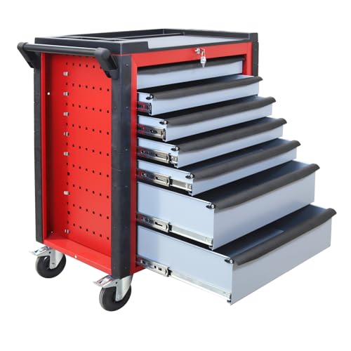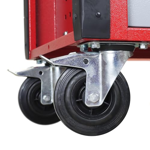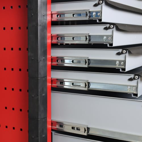 ✓ Pulverbeschichteter, hochwertiger Metall Werkzeugwagen mit Hilfe von 7 Auszügen, Schiebegriff, zusätzlich großen Ablagemöglichkeiten, Zentralschließung und Vollauszug. – Zwei Lenkrollen (gebremst)