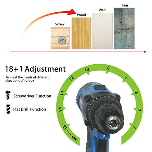 ※ Leistungsstarkes Akku bohrschrauber Set – 21V akkuschrauber mit 18 + 1 verschiedenen Drehmomenteinstellungen und 2 Gang Getriebe. Er kann problemlos Schrauben durch Holz (maximale Bohrkapazität 23 mm) und Stahl (maximale Bohrkapazität 10 mm), Keramikfliesen und andere bohren und schrauben Materialien.