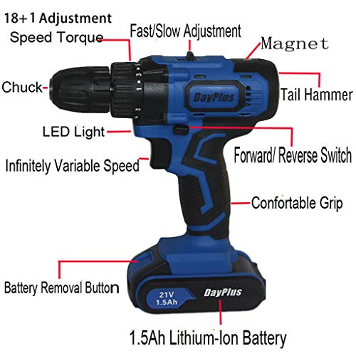 DayPlus 21V Akkuschrauber bietet Vielseitigkeit und Flexibilität, um den perfekten Akkuschrauber zu einspeisen, der sich ideal für Aufgaben in und um Haus, Garage, Garten und Werkstatt eignet, einschließlich Bohren in Holz, Kunststoff und Trockenbau, Zusammenstellen von Möbeln, Anpassung / Austauschen Eine Leuchte, die ein elektrisches Haushaltsgerät für Reparaturen und mehr öffnet!