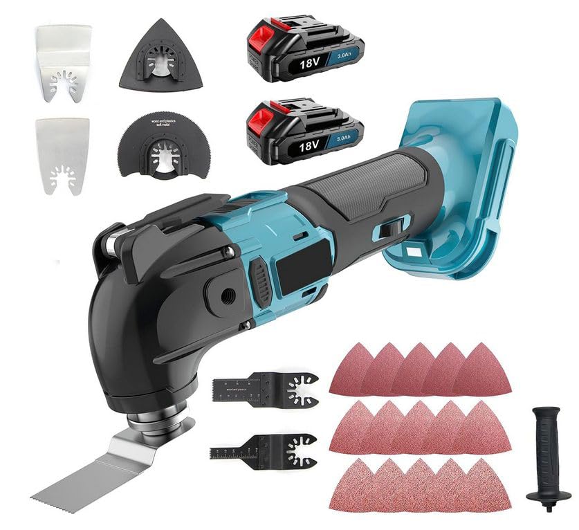 Akku-Multitool,multifunktionswerkzeug Akku für Makita 18V Akku, Werkzeugloser Zubehörwechsel,6 Geschwindigkeitsstufen, Anti-Vibrationsgriff,8500-21000RPM,22 Zubehör(inc 2 3.0Ah akkus)