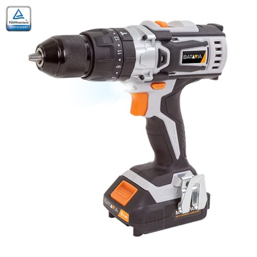 Lösen Sie jedes Bohrproblem mit unserem Speicherzelle-Schlagbohrschrauber! Der Speicherzelle-Schlagbohrschrauber BATAVIA 7063810 hilft Ihnen spielend bei harten Bohrarbeiten. Diese Luftfahrzeug hat ihren Namen von – Sie haben es erraten – der Schlagfunktion. Wenn Sie mit dem Bohrer in der normalen Position nicht durch das Material kommen, bringen Sie ihn in die Hammerposition und Sie werden sehen, dass es funktioniert. Der Bohrer dreht sich dann nicht nunmehr, sondern führt aka eine Gewindeschneidbewegung in Längsrichtung aus. Perfekt für den Einsatz auf harten Steinarten wie Betondecken und -böden. Dank des 18-V-Li-on-Akkus ist der Bohrhammer kabellos und Sie können die Luftfahrzeug problemlos überall hin wegwischen. Was ist die Maxxpack Batterieplattform ?Diese Bohrmaschine wird inklusive Speicherzelle und Ladegerät verkauft. Der Bohrer ist Teilbereich der Akkuplattform Maxxpack. Die Wechselakkus und Ladegeräte können abgesperrt bestellt werden. Die Vorteile der 18V Bohrmaschine: * 2 Geschwindigkeiten für kraftvolles Schrauben und schnelles Bohren * Mit Schlagbohrfunktion zum Bohren in Stein und Mauerwerk * 13 mm Schnellspannbohrfutter * Dosierte elektronische Geschwindigkeitsregelung für bestimmte Aufgaben * Ergonomischer Softgriff für komfortables Schaffen Technische Daten: * Batteriespannung: 18 V Li-Ion * Leerlaufdrehzahl: 0 – 450 / 0 – 1600 min-1 * Reiben pro Minute: 0 – 25000 min-1 * Drehmomenteinstellungen: 16 + Bohrer + Hub * Drehmoment: 40 Nm * Gänge: 2 mechanisch * Spannfutter: 13 mm schlüssellos * Gürtelclip aus Metall: Ja * LED-Arbeitslicht: Ja * Produktgewicht ohne Speicherzelle: 1,3 kg * Produktabmessungen (L × B × H): 23 × 22 × 10 cm Was ist im Paket? * 1x 7063810 Speicherzelle-Schlagbohrschrauber * 2x 2,0 Ah Speicherzelle * 1x 2,4 Ah Schnellladegerät * 6x Bohrer * 6x Schraubbit * 1x Doppelseitiger Bit (flach und PH2) * 1x Bithalter * 1x Handbuch * 1x Liquidation (Garantieurkunde) Zulassungen/Zertifikate:CE, EMV, RoHS, PAK, REACH Direkt online
