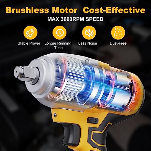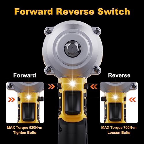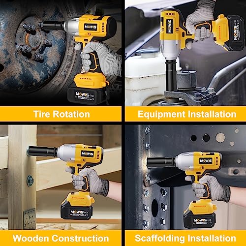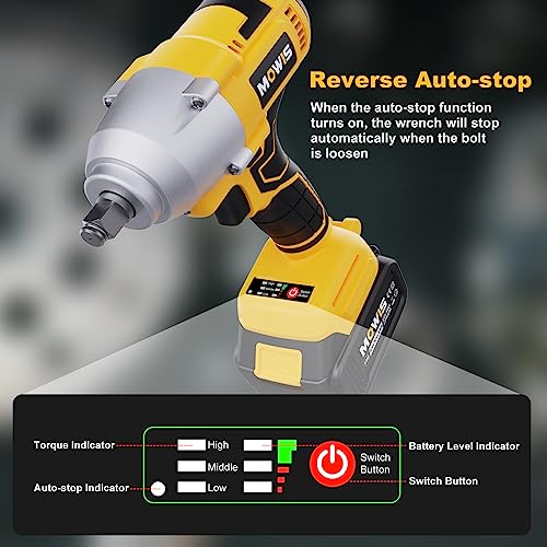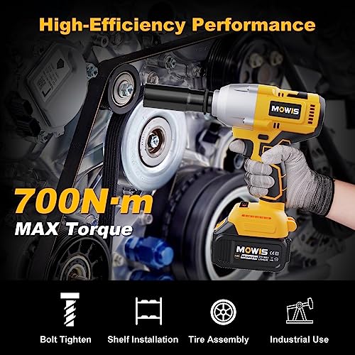 700N.m Hohes Drehmoment *** MOWIS Schlagschrauber liefert 7000Nm Losbrechmoment und 600Nm Anzugsdrehmoment. Sie können die Geschwindigkeit des bürstenlosen Schlagschraubers mit dem Beule, den Sie auf den Auslöser ausüben, novellieren.