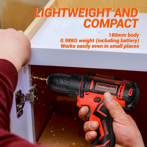 Akkuschrauber 12V, Akkubohrer, Akku Bohrschrauber Set mit 2 Akkus 2.0Ah, 25Nm Drehmoment, 2-Gang, 25+1 Drehmomenteinstellung, 10mm Bohrfutter, LED-Licht, 24tlg Zubehör und Koffer, Für Reparatur & DIY