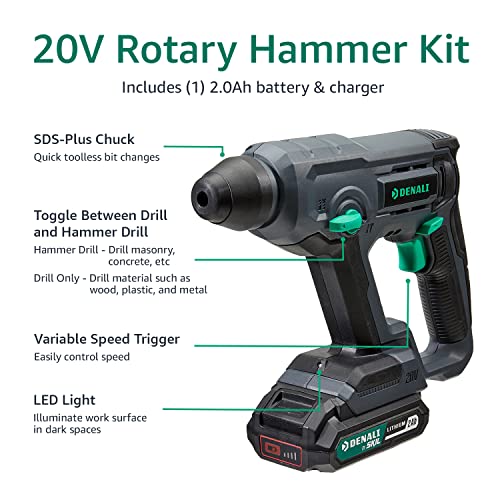 Amazon-Marke, Denali by SKIL, Bohrhammer-Set, 18 V (20 V max.), inklusive 2,0 Ah Lithium-Akku und Ladegerät
