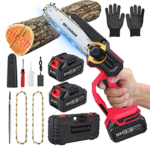 【Effizientes & Glattes Sensen】Die verbesserte 6-Verzinsung Akku Mini Kettensäge verfügt über einen leistungsstarken 750W-Motor aus reinem Kupfer, hat einen Überlastschutz und eine Überhitzungsschutzfunktion. Die Kettengeschwindigkeit ist so hoch wie 26,2ft/s. Effizientes Sensen ermöglicht es Ihnen, Ihren Garten und Ihre Terrasse leicht zu verwandeln.