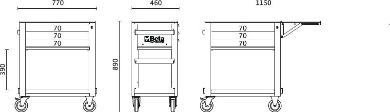Beta – BW C50S-G Servicewagen unter Einsatz von drei Schubladen