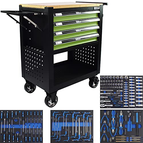 Beta – BW C50S-G Mobiler Werkzeugkasten mit 3 Schubladen, integriertem seitlichen Schraubendreherhalter und Sortiment von 189 Werkzeugen – Grau