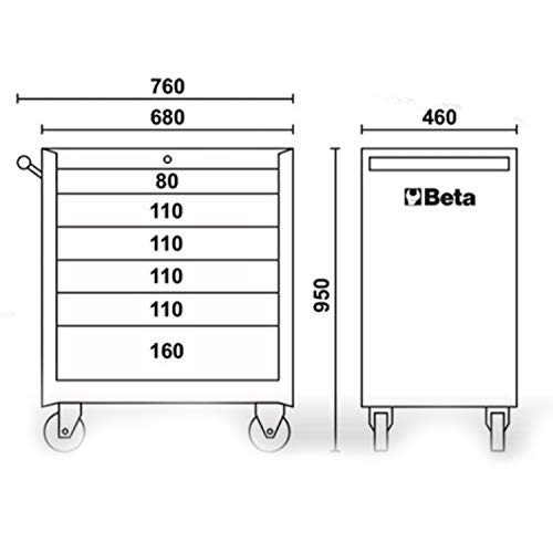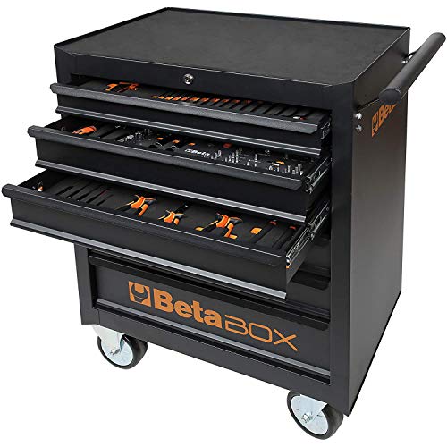 Lieferumfang: Beta C04BOX Werkzeugwagen (Werkstattwagen mit 125 mm Rollen, 6 Schubladen, Polypropylen-Abschirmung, Sicherheitsverriegelung) – Maße: 98 x 74 x 52cm – Farbe: Schwarz – Made in Italy