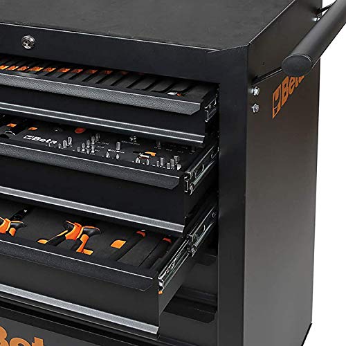 Beta C04BOX Werkzeugwagen Werkstattwagen (125 mm Rollen, 6 Schubladen mit Moosgummi-Matten, hochfester Polypropylen-Schutz, zentrale Sicherheitsverriegelung, 98x74x52cm, Made in Italy), Schwarz