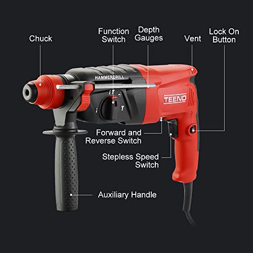 【Ergonomisches Design】Der Hilfsgriff mit Rillen und Softgrip-Oberflächen sorgt statt dessen einen sicheren und angenehmen Griff alias bei längeren Rödeln. SDS Plus ermöglicht einen schnellen und werkzeuglosen Austausch einer Differenziertheit von häufig verwendeten Bohrern und Meißeln.