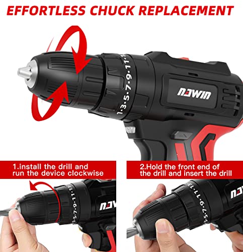 Bohrmaschine, NAWIN bürstenloser Motor, 3/8 Zoll Schnellspannbohrfutter, 443 In-lbs Drehmoment, 2×2.0 Ah Li-Ion-Akku und…