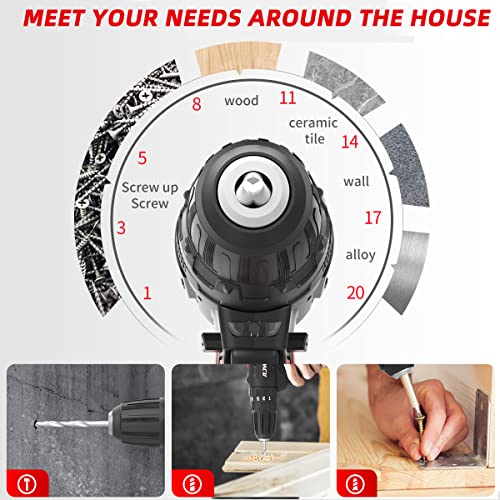Erfüllen Sie Ihre Bedürfnisse rund um das Haus: Der extrem robuste Bohrer liefert 1,125 kg Drehmoment, der Bohrmeister hat drei Funktionen: Schraubendreher, rechtwinkliger Bohrer und Akkubohrmaschine zum Bohren von Holz, Metall, Kunststoff, losem Beton und allen Schraubendreher-Anforderungen.