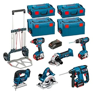 Bosch Bohrhammer GBH 18 V-EC Professional – Kreissäge Bosch GKS 18 V-LI Professional – Bosch GWS 18 V-LI Professional – Schlagschrauber Bosch GDX 18 V-LI Professional – Bohrschrauber Bosch GSB 18-2-LI Professional – Schmorsäge Bosch GST 18 V-LI Professional – 3 Akkus 4,0 Ah 18 V – GAL18V.