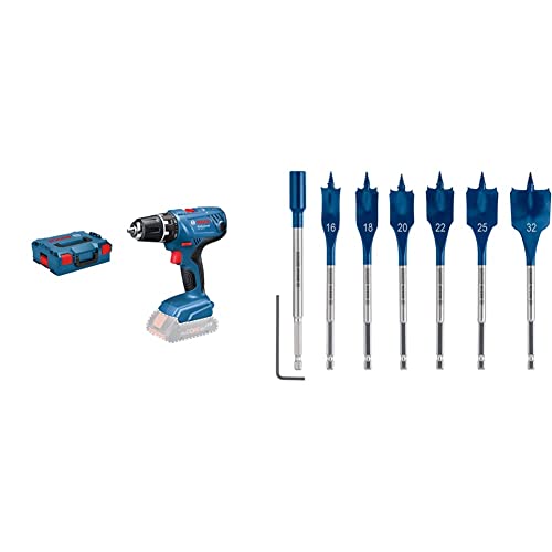 Bosch Professional 18V System Akku-Schlagbohrschrauber GSR 18V-21 (ohne Akkus, in L-BOXX 136) + 7x Expert SelfCut Speed Flachfräsbohrer Set (für Weichholz, Grobspanplatte, Ø 16-32 mm, Zubehör)
