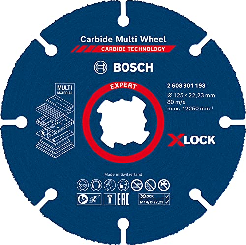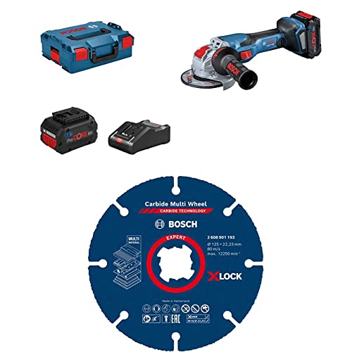 Bosch Professional BITURBO Winkelschleifer GWX 18V-15 C (Ø: 125mm, X-LOCK, 2 x 8.0 Ah ProCORE Akkus + Ladegerät, in L-BOXX) + Expert Carbide Multi Wheel X-LOCK Trennscheiben (Hartholz, Ø 125 mm)