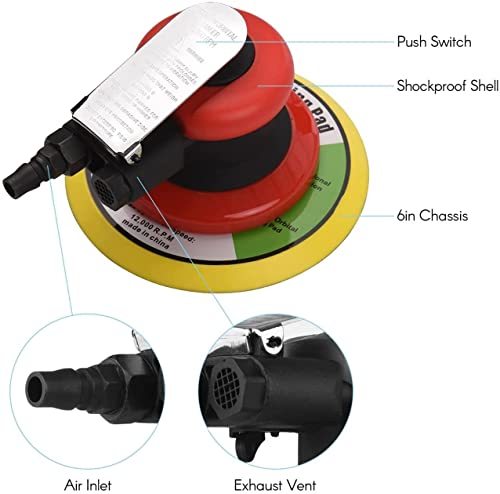 Buffer Pneumatischer Luftschleifer Exzenterschleifer Luftschleifer 6″ Vakuum-Exzenterpolier-/Schleifmaschine Schleifwachswerkzeuge für Autowand Holz Metall Effizientes Polieren
