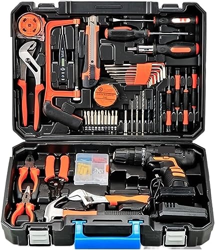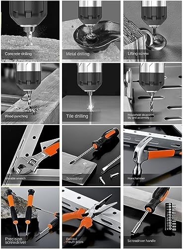 DEKOQ Akku-Schraubendreher-Set, Werkzeug Elektrische Bohrmaschine Elektrische Handbohrmaschine Werkzeugkasten Multifunktionale Schlagbohrmaschine Kombinationsset Werkzeugkästen (Color : O)