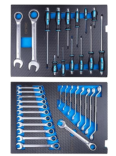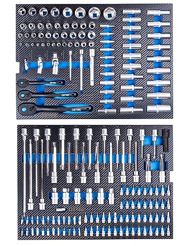 🛠 PREMIUM: Werkzeug aus hochwertigem Chrom-Vanadium-Stahl mit langer Lebensdauer für den täglichen Einsatz in der Werkstatt, egal ob Profi oder Hobby-Schrauber. Bei der großen Varietät an Werkzeug in den unterschiedlichen Einlegern ist für jeden etwas dabei.