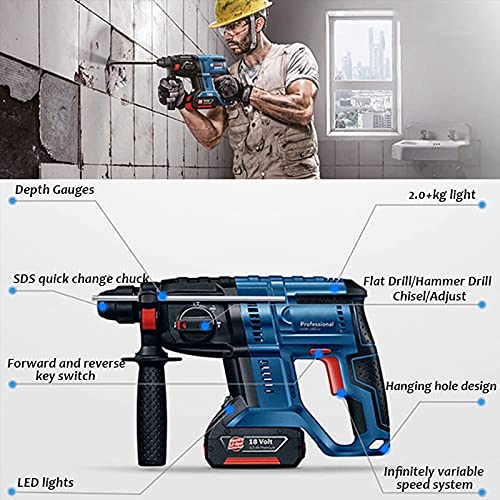Drehhammerbohrer 18V schnurloser Zerrüttung 4000mAh Lithium-Batterien Hammer Elektrobohrer 3 in 1-Modus-Schlagbohrer