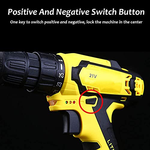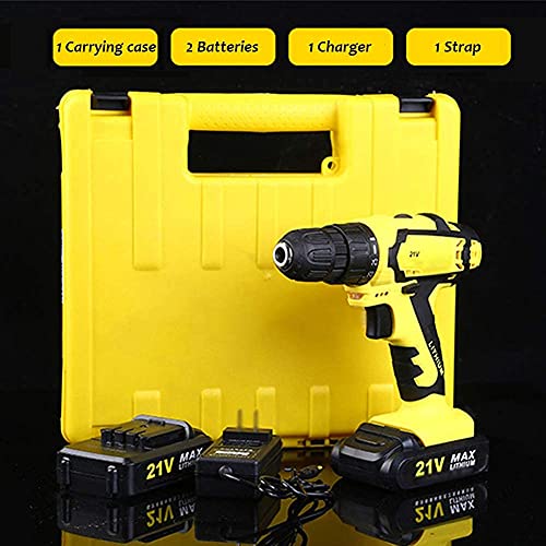 [POWERFUL DRILL DRIVER KIT]: 21V cordless drill with 25 + 1 torque setting that can provide precise control for drilling in stone, wood, metal, plastic and all screwdriving tasks.?They are enough for you to do most of the work.?The maximum drilling capacity is 25mm for wood, 20mm for cement, 10mm for metal.