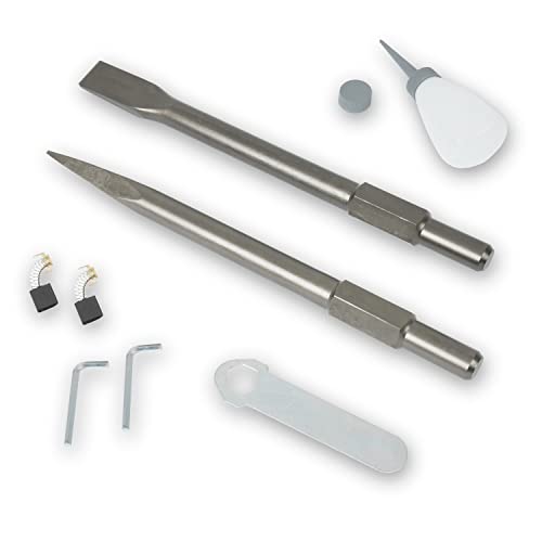 LIEFERUMFANG: Im Lieferumfang sind ein SDS HEX Spitzmeißel und Flachmeißel enthalten. Daneben erhalten Sie Sechskantschlüssel, Schraubschlüssel und Öl Abroller zur Bedienung und Wartung. Des Weiteren: Ein hochwertiger Transportkoffer aus Metall