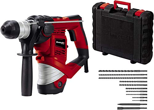 Einhell Bohrhammer TC-RH 900 Kit (900 W, 4100 min.-1 Schlagzahl, 3 J Schlagstärke, Hammerbohren, Bohren und Meißeln mit Meißelfixierung, inkl. 12-teiligem Bohrer- & Meißelset, Koffer, Bohrdüse)