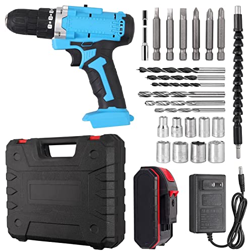 🥇🥈🥉【3-in-1-Positiv! 25 Drehmomentstufen + 45 maximales Drehmoment! 2-Gang-Getriebe!】: ①Elektroschrauberfunktion + Bohrfunktion + Schlagbohrfunktion: Ein Gerät kann alles. ②Freie Kür von 25 Arten von Drehmoment + elektronische Geschwindigkeitsregelung mit zwei Geschwindigkeiten(0-400/0-1650): Bietet die präziseste Steuerung für verschiedene Aktivitäten. ③45 Nm maximales Drehmoment + Schlagbohrfunktion: Bohren und Anziehen von Beton, Metall, Holz und Kunststoff problemlos abarbeiten.