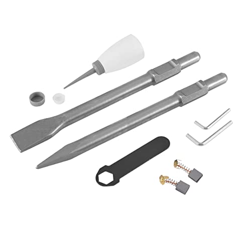 Ein vielseitiges Werkzeug: Der Abrisshammer ist sofort einsatzbereit. Mit seinen Meißeln (Spitz-, und Flachmeißel) können Sie vielerlei verschiedene Materialien verarbeiten. Das Produkt wird in einer Box mit Meißeln, einem Inbusschlüssel, einem Kohlensatz und einem Ölfläschchen geliefert