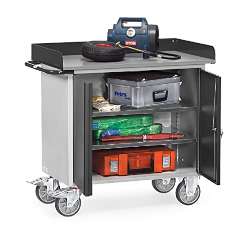 Stahlblech-Gefängnis, pulverbeschichtet, Korpus lichtgrau RAL 7035, Front anthrazitgrau RAL 7016. Mit Hilfe von 1 zweitürigen Stahlschrank Schänke Mitteltrennwand, 1 festen ebenso 2 verstellbaren Böden. Zentralverschluss via Zylinderschloss. Öffnungswinkel max. 120°. Arbeitsfläche Sandwich-Plattenbau 19 mm fantastisch. Mit Hilfe von Abrollrand, 80 mm ausgeprägt, pulverbeschichtetes Stahlblech. 2 Lenk- ebenso 2 Bockrollen, TPE-Luftreifen, Naben Mit Hilfe von Rillenkugellager. Feststeller an den Lenkrollen, gemäß der Europäischen Norm EN 1757-3 (Bürgschaft von Plattformwagen). Tragkraft pro Einlegeboden im Stahlschrank 80 kg.