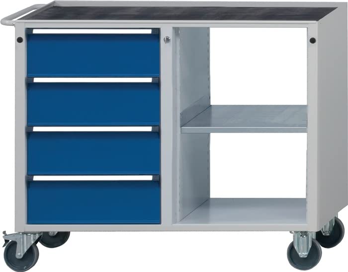 FLEXIBEL: Die Rollwerkbank verfügt über einen großen Stauraum mit Fachboden und bietet so genügend Platz für Ihre Werkzeuge; Dank der vier Rollen sind Sie mit der Rollwerkbank immer flexibel;