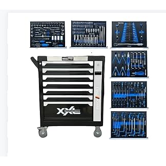 Neuer originalverpackter Werkzeugwagen mit 7/6 volle Werkzeuge Schubladen. Die beste Bekannte Werkzeugwagen der Marke Munich Tolls“ erfüllt leer Ansprüche an einen teuflisch guten Werkzeugwagen. Überzeugen Sie sich noch heute von der Qualität dieses Produktes, welches alleinig nichtsdestoweniger bei uns erhältlich ist. Gehen Sie keine Kompromisse ein und setzen Sie auf das Original. Die Werkzeuge sind ganz hochwertigem Chrom-Vanadium-Stahl hergestellt und überzeugen durch Qualität und Konstanz. So ein ,Werkzeugwagen darf in keiner Werkstatt und Garage fehlen 3 Knarren/Ratschen feinverzahnt (1/4 Steuer , 3/8 Steuer, 1/2 Steuer) 1/4″ Steuer Zubehör 13 Nüsse von 4mm bis 14mm ( leer gängigen Größen ) 11 Langnüsse 4mm – 13mm (leer gängigen Größen) Kardangelenk Verlängerung 65mm 3/8″ Steuer Zubehör: 10 Nüsse von 10mm bis 19mm (leer gängigen Größen) 11 Langnüsse von 8mm bis 19mm (leer gängigen Größen) Kardangelenk Verlängerung 115mm 1/2″ Steuer Zubehör: 17 Nüsse von 10mm bis 30mm (leer gängigen Größen) 9 Langnüsse von 10mm bis 24mm (leer gängigen Größe) Kardangelenk Verlängerung 110mm Schublade 2: Zubehör 1/4″ Steuer Ratsche: Innen Torx- Nüsse ohne Bohrung – ( T8,T9,T10,T15,T20,T25,T27,T30,T40 ) Innen Torx- Nüsse mit Bohrung – (TT8,TT9,TT10,TT15,TT20,TT25,TT27,TT30,TT40) Imbus Nüsse – ( H3 bis H8 ) Schlitz Nüsse – ( SL4 bis SL7 ) Kreuz Nüsse – ( PZ0 bis PZ3, PH0 bis PH3 ) Vielzahn Nüsse – ( M8,M10,M12) Fünfstern Nüsse – (TS10,TS15,TS20,TS25,TS27,TS30,TS40,TS45,TS50) Zubehör 3/8″ Steuer Ratsche: Niederschrift statt Bits Innen Torx- Nüsse ohne Bohrung – ( T40,T45,T50,T55,T60,T70) -Innen Torx- Nüsse mit Bohrung – (TT40,TT45,TT50,TT55,TT60,TT70) Imbus Nüsse – ( H7,H8,H10,H12,H14 ) Schlitz Nüsse – ( SL8,SL10,SL12 ) Kreuz Nüsse – ( PZ3,PZ4, PH4,PH8 ) Zubehör 1/2″ Steuer Ratsche: Kurzaufsatz Imbuss (H14,H17,H19,H22,H24) Vielzahn M16 Mittlereraufsatz Imbuss (H5,H10,H11,H13 ) Torx (T40,T45,T50,T55,T60,T70,T80) Ribe (R9, R10) Vielzahn (M9,M10,M12,M14,M16,M18) Langaufsatz Torx (T30,T45,T50) Imbuss H7 Schublade 3: Maul- Ratschenschlüssel 8-9-10-11-12-13-14-15-16-17-19-21-22mm Drehmomentsclüssel Schublade 4: Feinmechanik- Schraubendreher Schlitz: SL3.0 x 100mm Kreuz : PH0 x 100mm Schraubendreher mit Softgriff und Außen Sechskant: Schlitz: SL6 x 38mm ; SL5 x 75mm ; SL6 x 100mm ; SL8 x 150mm Kreuz : PH2 x 38mm ; PH1 x 75mm ; PH2 x 100mm ; PH3 x 150mm Torx- Schraubendreher:: T6 x 80 ; T7 x 80 ; T8 x 80 ; T9 x 80 ; T10 x 80 ; T15 x 100 ; T20 x 100 ; T25 x 100 T27 x 100 T30 x 100 ; T40 x 150 Schublade 5: T-Halt Imbus / Sechskantset mit Kugelkopf ( 3 x 115mm ; 4 x 120mm ; 5 x 140mm ; 6 x 160mm ; 7 x 170mm ; 8 x 175mm ; 10 x 200mm ) T-Halt TORX T10 – T40 Schublade 6 Seegeringzangenset Innen/Außen 4tlg. ( 2x gebogen , 2x neoterisch ) Zangenset : ( Kombizange , Seitenschneider , neoterisch Spitzzange, gebogene Spitzzange, Rohrzange ) Latthammer Körner (3mm,4mm,5mm,6mm,7mm,8mm) Lieferumfang: 1x Werkstattwagen inkl. Werkzeug 2x Schlüssel Gewicht Werkzeugwagen: 69 kg