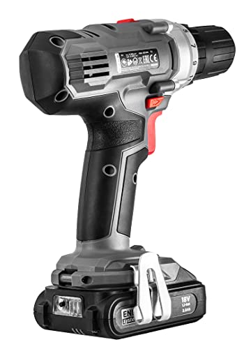 Dies Garnitur enthält: aufladbare Batterie-Bohrer/Schrauber, 2 x wiederaufladbarer aufladbare Batterie, Akkuladegerät, Tragekoffer.