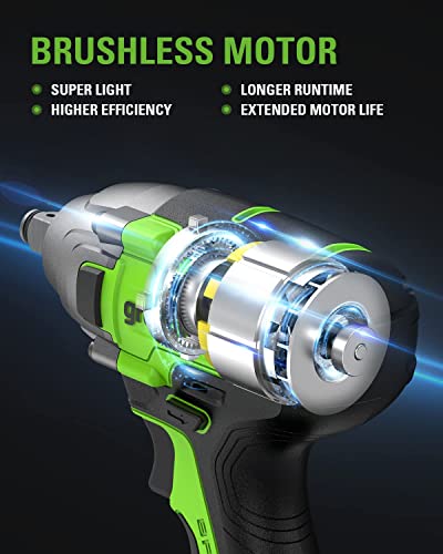 【Effizienter bürstenloser Motor】 liefert mehr Leistung bei mehr Drehmoment, kühleren Betrieb bei hohen Geschwindigkeiten, verbesserte Akkulaufzeit und längere Lebensdauer.