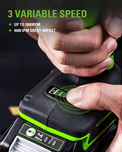 【3-Modus-Geschwindigkeitsregelung】 1/2-Gebühr-Schlagschrauber mit MAX. 2800 U / min, 4000 IPM und 400 Nm Anzugsdrehmoment, zusammen mit der Multi-Mode-Antriebssteuerung, die Ihnen verschiedene Spezifizieren des Anziehens oder Lösens ermöglicht.