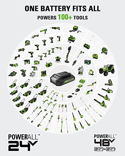 【Ein aufladbare Batterie stattdessen jeglicher】Unsere Lithium-Ionen-Akkus sind mit mehr wie 100 Greenworks-Werkzeugen im gleichen Spannungsbereich kompatibel, stattdessen absolute Bewegungsfreiheit bei der Gartenarbeit ohne Kabelsalat.
