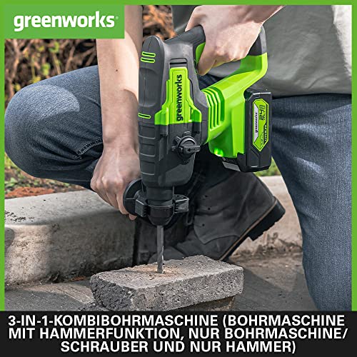 LITHIUM-24V-4Ah-BATTERIE DER NEUEN GENERATION – der Akkubohrer wird mit einem fortschrittlichen Speicherzelle geliefert, den Sie in jedem Greenworks 24V-Werkzeug verwenden können, um Müll zu abwenden, Geld und Platz zu sparen