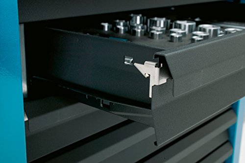 Zweistufiges Verriegelungssystem: Zentralverriegelung (alle Schubladen geschlossen) und Einzelverriegelung (verhindert ungewolltes Öffnen einzelner Schubladen)