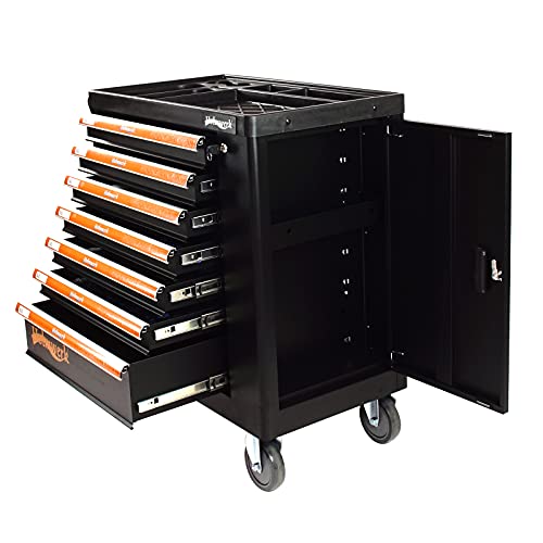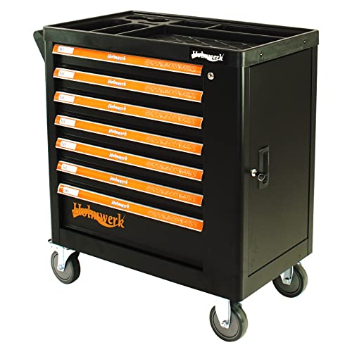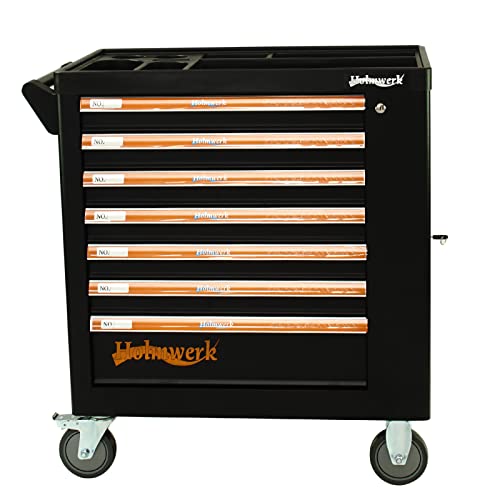Holmwerk® Werkstattwagen Profi leer schwarz Montagewagen Werkzeugwagen Assistent 7 Schubladen mit Vollauszug