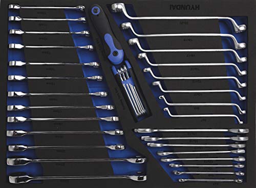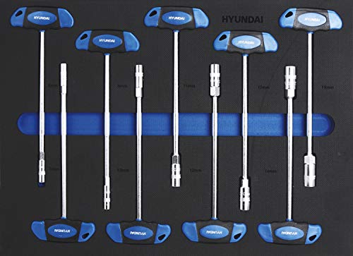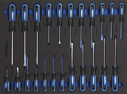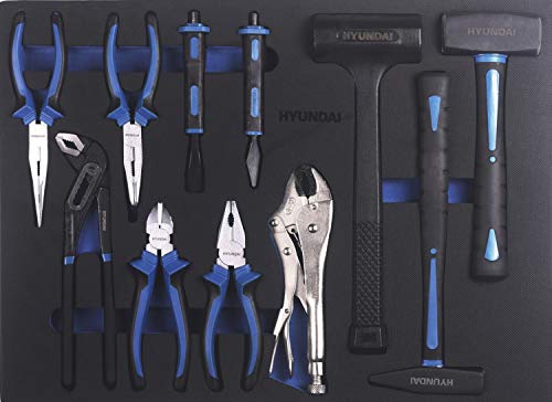 HYUNDAI Werkstattwagen Set 59004 (305-teilig, hochwertiger Werkzeugwagen, 7 Schubladen, 6 Schubladen bestückt, separater Ablagefach, Montagewagen gefüllt mit Profiwerkzeug)