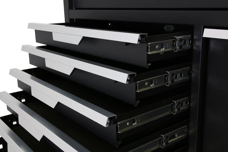 [VIEL STAURAUM] Mit seinen zahlreichen Schränken und Schubladen bietet das Set besonders viel Stauraum und ist für nahezu jede Arbeit ausgelegt. Die Werkstatteinrichtung eignet sich ideal für umfangreiche Anwendungszwecke.